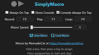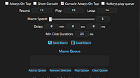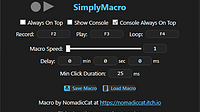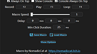 This update brings A few things Remember settings including Hotkeys Duration Speed Recorded/loaded macro added Delay option between loops Minimum click duration is to make sure that applications regis...